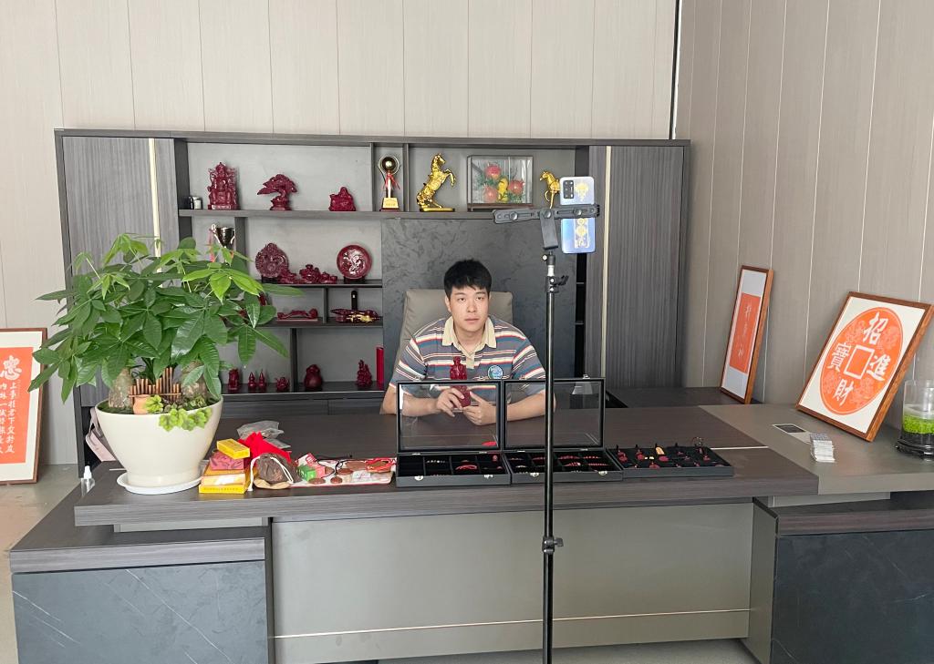 我校商贸物流学院学生蒋俊,于2022年9月进入直播电商卓越工匠班,在继张俊宇同学之后,再创创业佳绩,通过直播销售文创产品,半年内销售总额突破100万元。