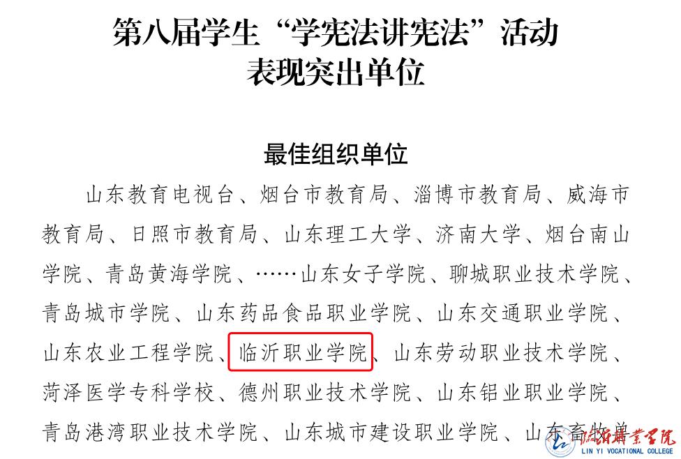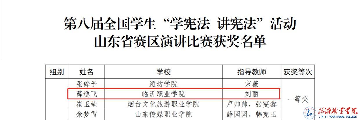 近日,山东省教育厅公布全省学生第八届“学宪法 讲宪法”活动比赛获奖选手、表现突出单位和个人名单,我校荣获“最佳组织单位”,学前教育学院学生薛逸飞、王孝欢分别获山东赛区演讲比赛一等奖和山东赛区素养竞赛二等奖。