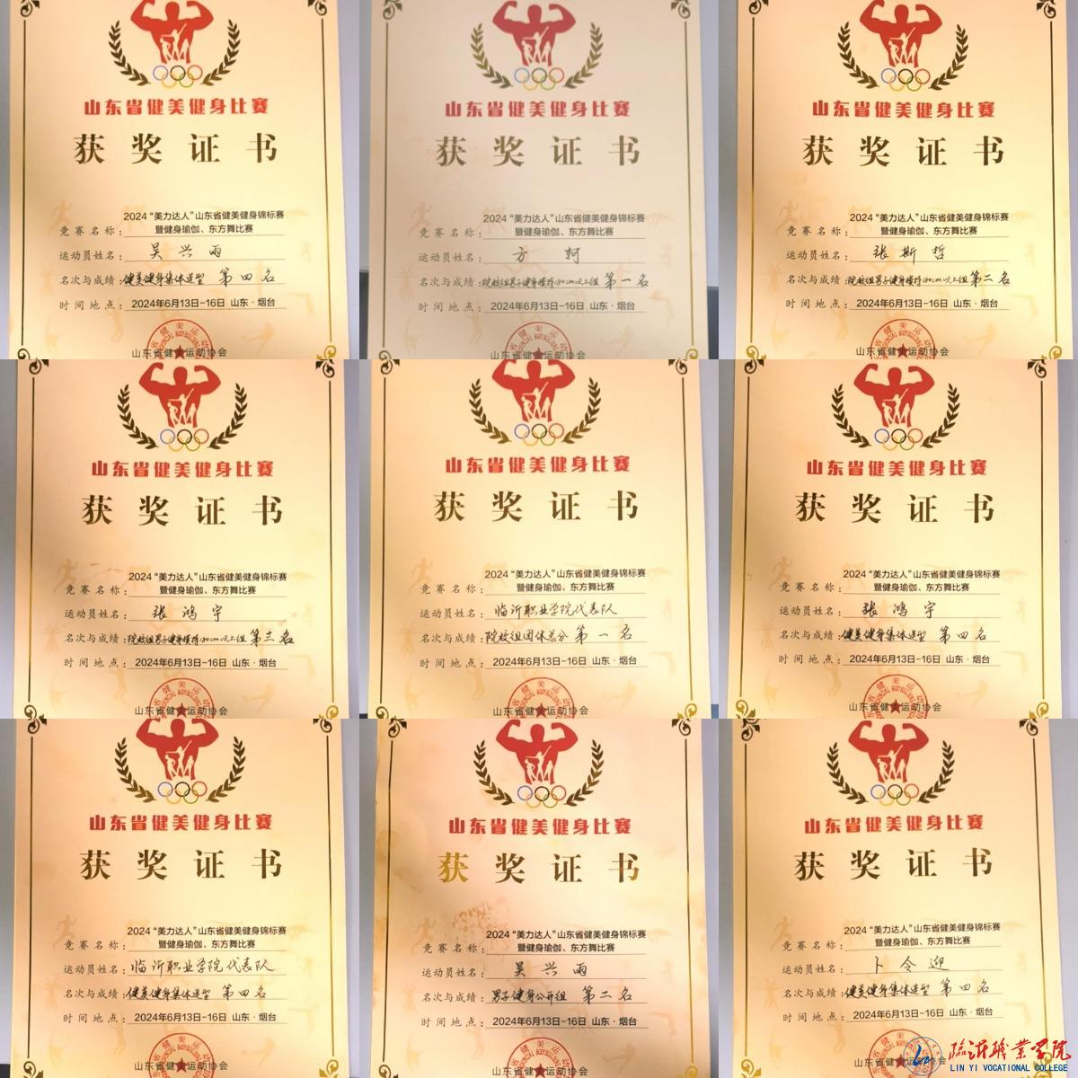我校派出了八名同学参加了本次“美力达人”山东省健美健身大赛暨2024“海乐福”杯山东省健美健身锦标赛,并分别获得一个冠军,三个亚军,两个季军,健美健身集体造型第四名并获得院校组团体总分冠军。