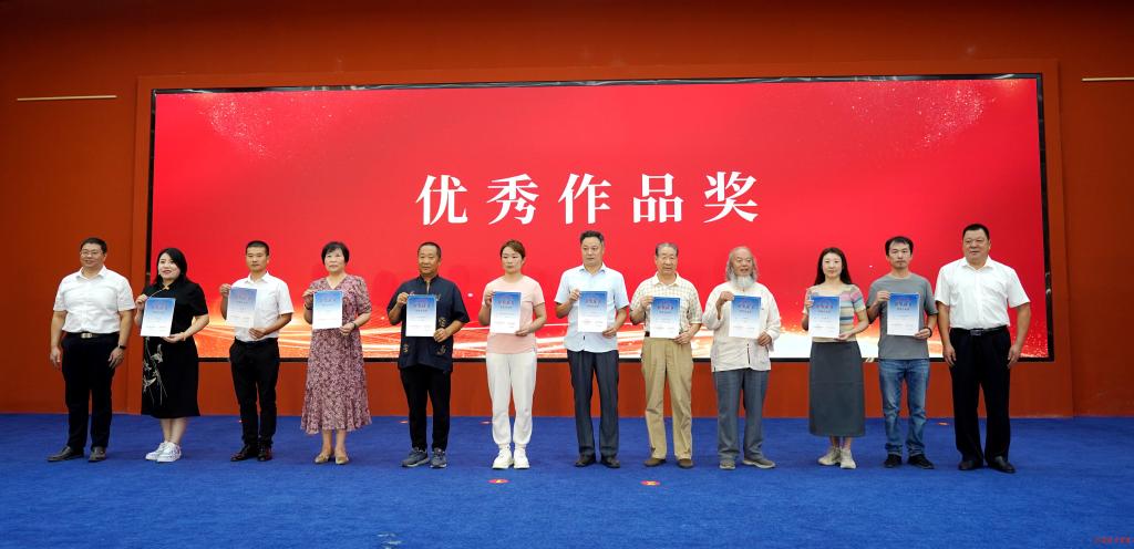 启动仪式上,对“非遗传承 凝心铸魂”2024年临沂市非遗文创作品征集活动获奖情况进行通报并颁奖,其中我校师生作品《墨香逸兰亭》(宁娱、田立平、谭梅)、《如意小算盘》(杨德超)、《凤舞盛世》(申晓涵、陈雨晴)荣获优秀作品奖,学校获优秀组织奖。