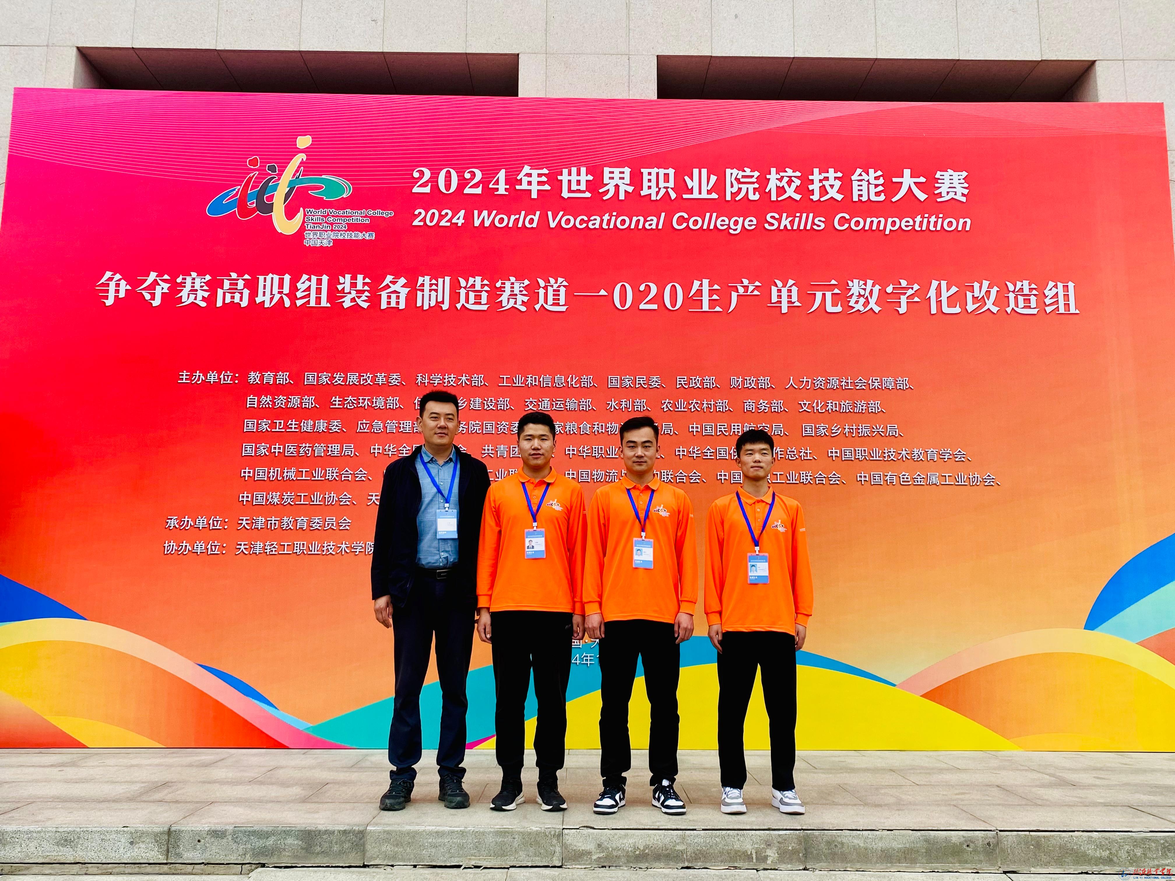 10月29日至31日,2024年世界职业院校技能大赛装备制造赛道一生产单元数字化改造组争夺赛在天津举行。本次大赛共吸引全国60支队伍、200余名参赛队员参赛,我校智能制造学院刘阅鑫、周志、袁熙文组成的学生代表队经过省赛、国赛选拔赛的激烈角逐,成功晋级世赛争夺赛,最终荣获世赛争夺赛铜奖。