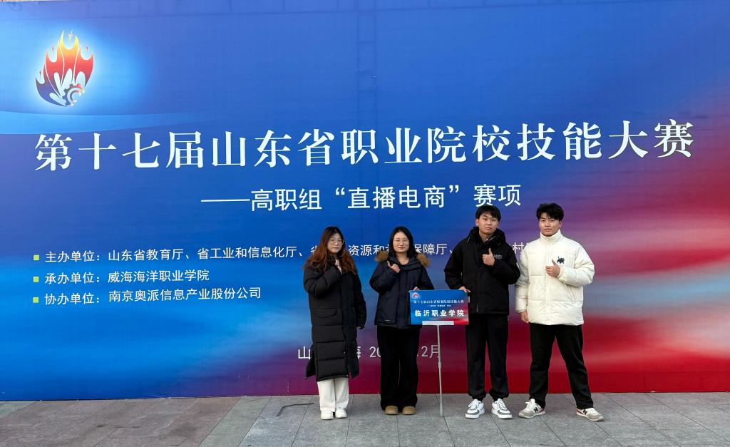 12月8日,第十七届山东省职业院校技能大赛“直播电商”赛项在威海海洋职业学院圆满落幕。来自全省62所院校的62支队伍同台竞技,商贸物流学院电子商务专业孟健周、林瑞、崔新静、许倩婷四名同学组成的参赛队以全省第三名的成绩获得省赛一等奖,为我校争得了荣誉。