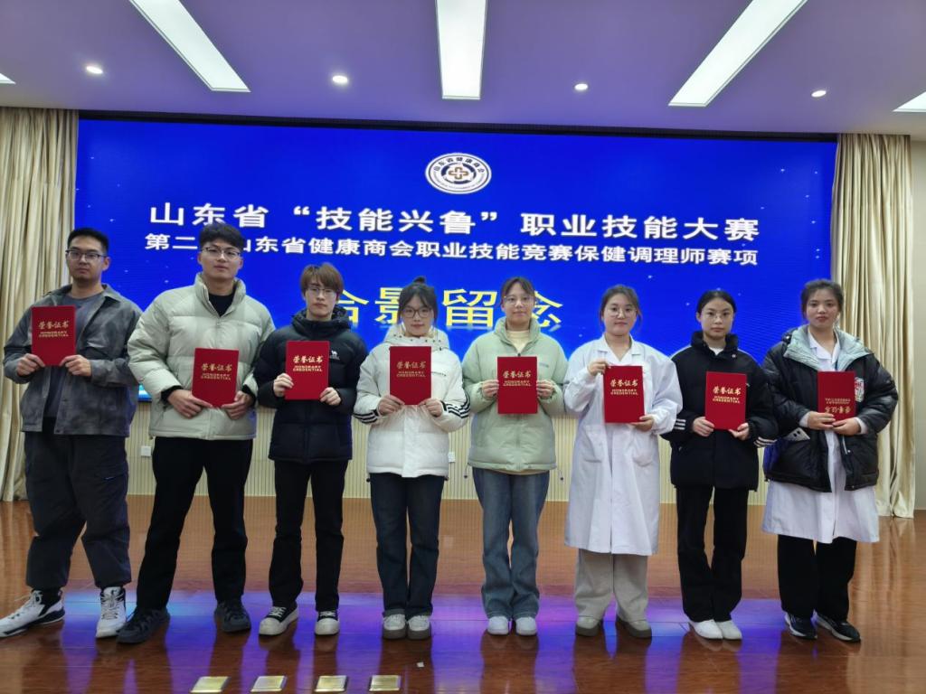 12月8日,山东省“技能兴鲁”职业技能大赛第二届山东省健康商会职业技能竞赛“保健调理师”项目竞赛在泰安举行。医养健康学院教师李源成绩列职工组第一名,获一等奖,学生组代表队荣获一等奖1项,二等奖3项,三等奖4项。