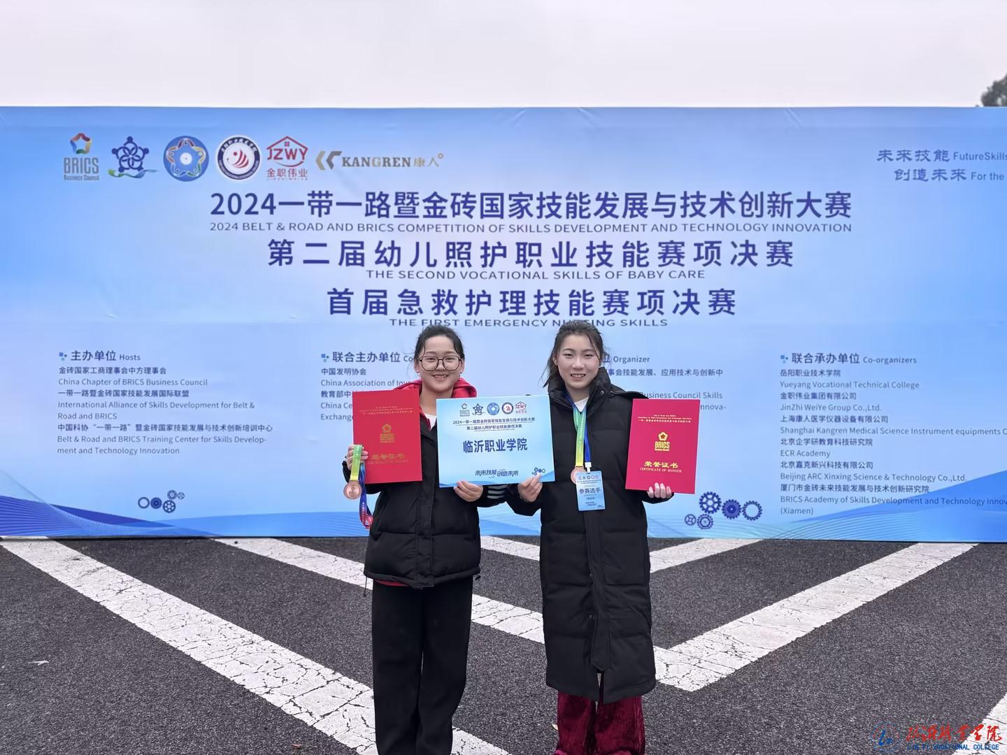 近日,2024一带一路暨金砖国家技能发展与技术创新大赛第二届幼儿照护职业技能赛项全国总决赛在湖南岳阳落下帷幕,共有来自全国80个院校的160名选手参赛,我校学前教育学院代表队吴文秀、田高荣,经过职业能力测评、理论知识测评、婴幼儿照护操作、早期发展指导等四个模块的激烈角逐,获得铜奖。