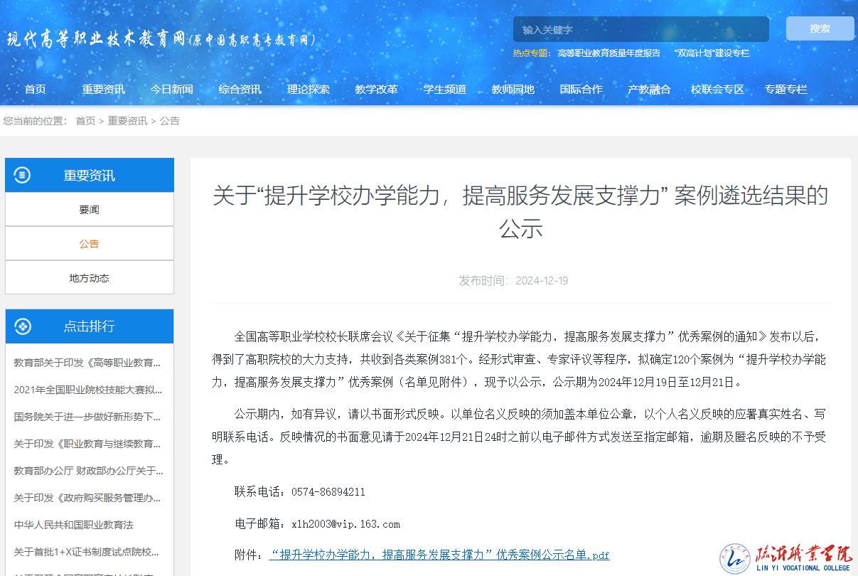 12月19日,全国高等职业学校校长联席会议发布“提升学校办学能力,提高服务发展支撑力”案例遴选结果,我校《政府搭台 四方协同 百企参与‘1+4+N’市域产教联合体建设与实践》、《‘引产入校 以产带教 产教协同’商贸物流专业群深化产教融合的创新与实践》等2项产教融合案例分获一、二等奖,入选全国优秀案例。