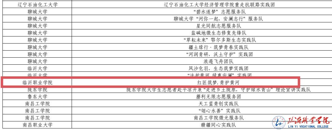 近日,由共青团中央社会联络部、生态环境部宣传教育中心、水利部宣传教育中心、国家林业和草原局宣传中心、北京林业大学联合主办的“美丽中国·青春行动”2025年绿色长征科考实践活动入选名单正式公布。临沂职业学院“红匠筑梦·青护黄河”团队凭借在黄河流域生态保护与高质量发展领域的扎实实践基础与创新性项目设计,从全国各所高校团队中脱颖而出,成功入选这一国家级专项活动,展现了当代青年学子在生态文明建设中的责任担当与专业风采。
