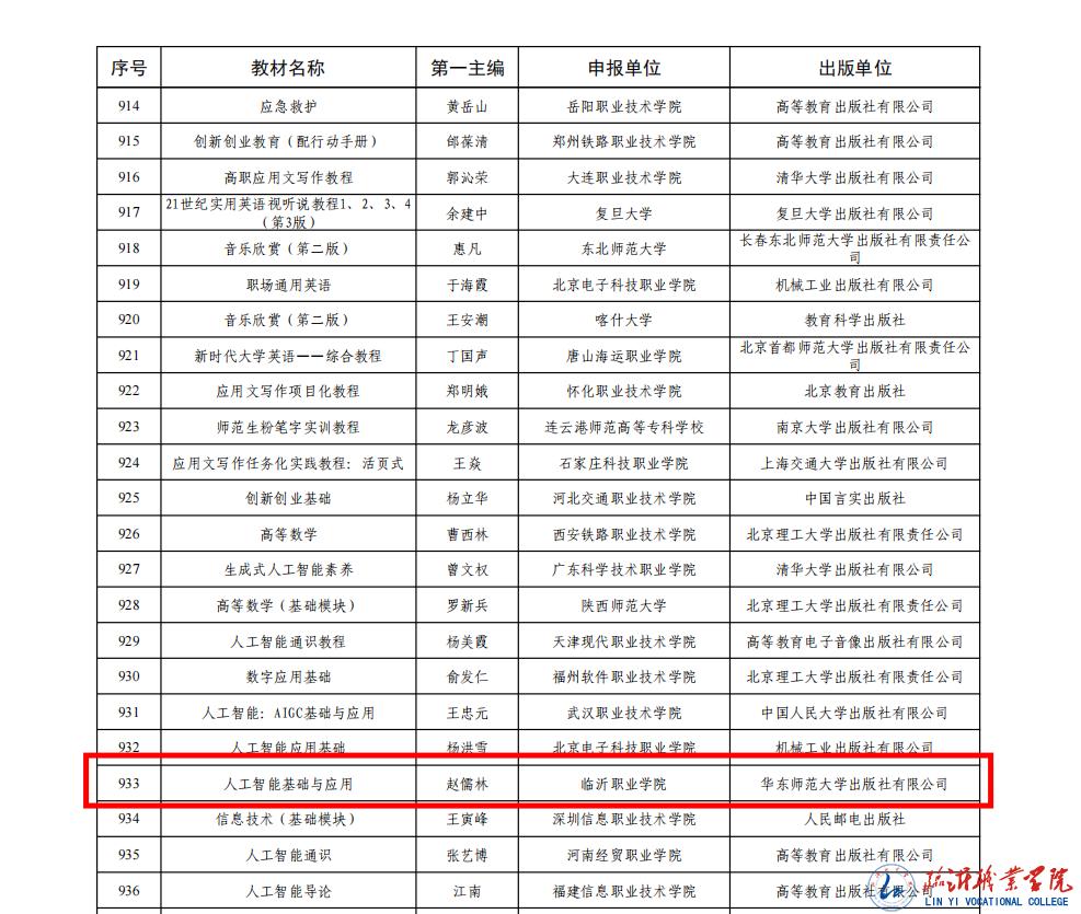 喜报!我校《人工智能基础与应用》入选第二批 “十四五” 职业教育国家规划教材