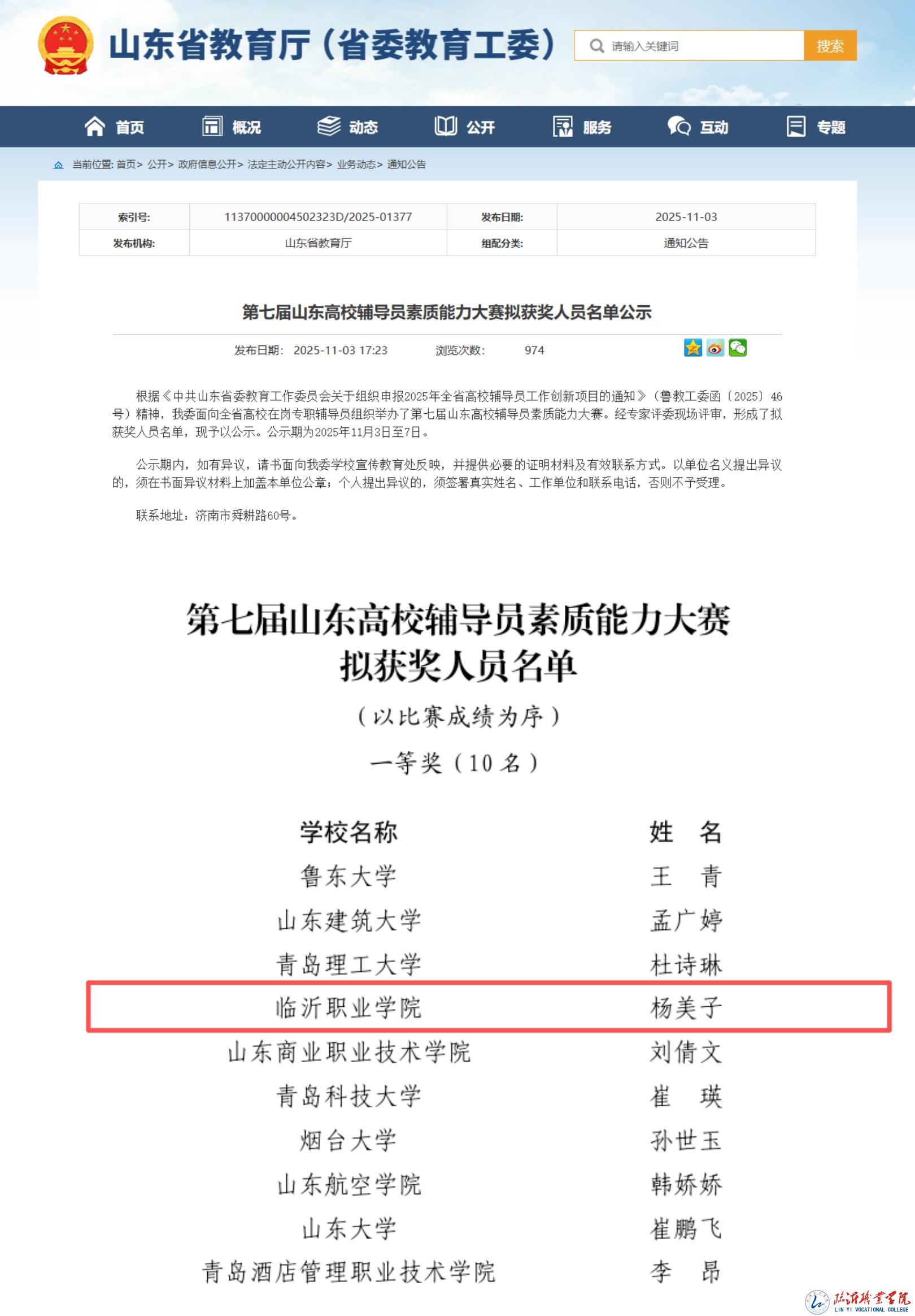 在刚刚落幕的第七届山东高校辅导员素质能力大赛中,我校辅导员杨美子凭借扎实的理论功底、过硬的职业能力与出色的现场表现,从全省179名参赛辅导员中脱颖而出,勇夺大赛一等奖,实现了我校在该项赛事上的新突破。
