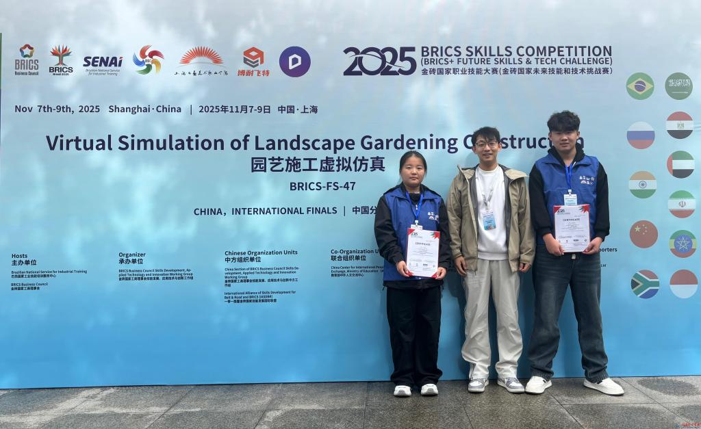 11月6日-9日,金砖国家职业技能大赛园艺施工虚拟仿真赛项在上海工艺美术学院圆满落幕。我校数字媒体与艺术学院刘敏、李圣康组成的参赛队伍,在从全国89支队伍、178名参赛选手中脱颖而出,凭借扎实的专业功底和出色的临场发挥,最终斩获二等奖。