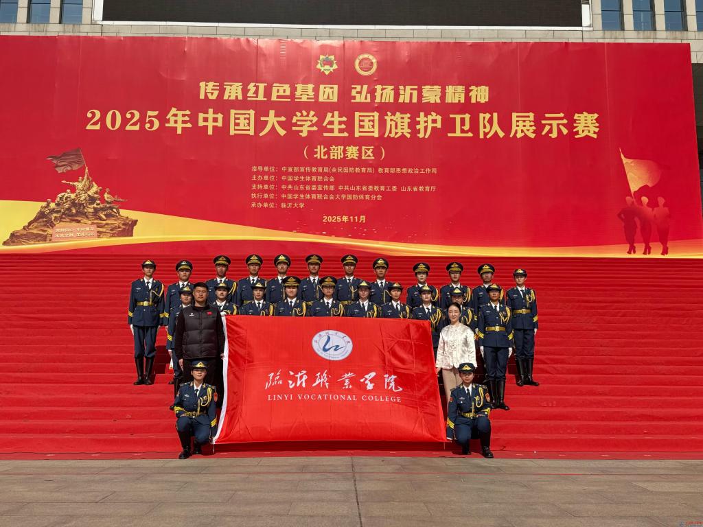 11月8日—12日,由中宣部、教育部指导,中国学生体育联合会主办的2025年中国大学生国旗护卫队展示赛(北部赛区)在临沂大学举行。我校国旗护卫队以昂扬的斗志、规范的队列和标准的动作要领,一举获得一等奖3项、二等奖1项的优异成绩。