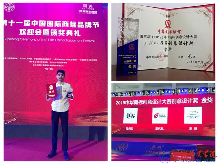 7月5日,建工学院代表我校在第三届中华商标创意设计大赛获得优异成绩,广告教研室王代礼老师获得金奖(第一名),奖金10000元,2017级广告设计与制作专业二班王康同学获得银奖,奖金5000元。