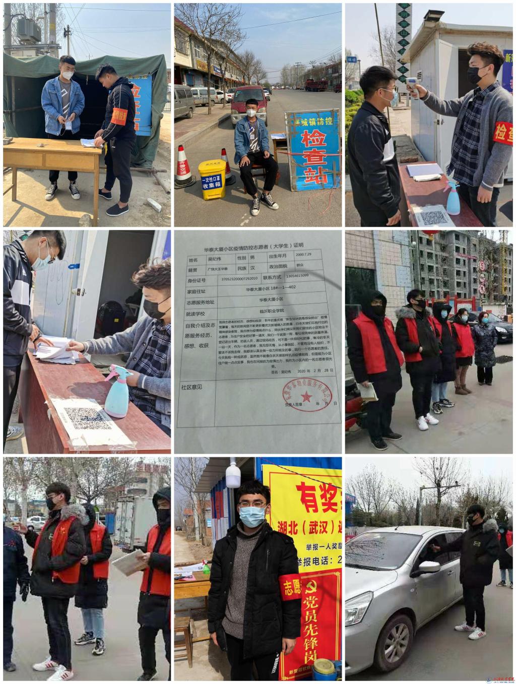 在抗击疫情的斗争中,商贸物流学院众多“90后”“00后”青年学生挺身而出,担当奉献,活跃在各自家乡的抗击疫情最前线。他们不畏艰险、冲锋在前,彰显了临沂职业学院青年学生的蓬勃力量。